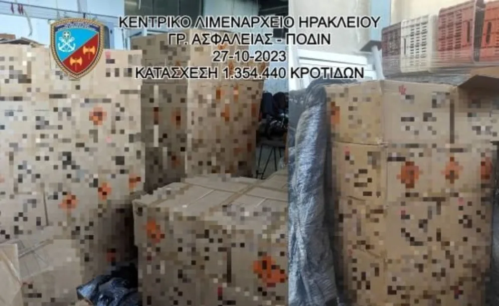Kατά τη διάρκεια ελέγχων σε χώρο μεταφορικής εταιρείας στο Ηράκλειο Κρήτης, από τα στελέχη της Περιφερειακής Ομάδας Δίωξης Ναρκωτικών και του Γραφείου Ασφάλειας του Κεντρικού Λιμεναρχείου Ηρακλείου, εντοπίστηκαν επτά (07) παλέτες με 222 χαρτοκιβώτια, τα οποία περιείχαν συνολικά 1.354.440 κροτίδες, διαφόρων επωνυμιών, η κατοχή των οποίων απαγορεύεται σύμφωνα με τις διατάξεις του Ν. 456/76 “Περί φωτοβολίδων και πυροτεχνημάτων” και του Ν.2168/93 “Ρύθμιση θεμάτων που αφορούν όπλα, πυρομαχικά, εκρηκτικές ύλες, εκρηκτικούς μηχανισμούς και άλλες διατάξεις”.