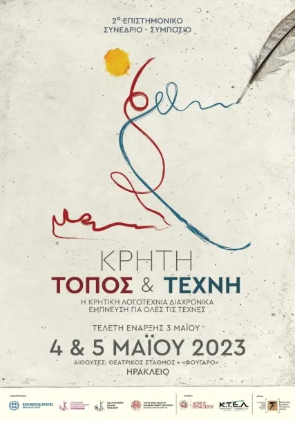 Μετά την επιτυχία του 1ου Επιστημονικού Συνεδρίου – Συμποσίου με θέμα «Τι άλλο είναι η τέχνη», το Ηράκλειο καλωσορίζει τις εργασίες του 2ου Επιστημονικού Συνεδρίου – Συμποσίου με τίτλο «Κρήτη: Τόπος και Τέχνη. Η Κρητική Λογοτεχνία διαχρονικά έμπνευση για όλες τις τέχνες». Το Συνέδριο – Συμπόσιο θα διεξαχθεί από τις 3 έως τις 5 Μαΐου 2023 και συνδιοργανώνεται από την Περιφέρεια Κρήτης, το Καλλιτεχνικό Σχολείο Ηρακλείου, τον Σύλλογο Φίλων Καλλιτεχνικού Σχολείου Ηρακλείου και το Εργαστήριο Θεάτρου, Κινηματογράφου και Μουσικής του Πανεπιστημίου Πατρών, με τη στήριξη του Δήμου Ηρακλείου και του ΚΤΕΛ Ηρακλείου-Λασιθίου, υπό την αιγίδα του Εργαστηρίου Σκηνικής Πράξης και Λόγου του Πανεπιστημίου Πατρών.