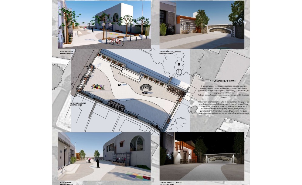 Οι εργασίες περιλαμβάνουν, μεταξύ άλλων, την κατασκευή πέτρινης βρύσης, επίστρωση νέου χυτού βιομηχανικού δαπέδου, κατασκευή νέου ευρύτερου πλατύσκαλου στην είσοδο του κτιρίου και ράμπα ΑΜΕΑ, καθαίρεση της υφιστάμενης πέτρινης περίφραξης στη δυτική πλευρά του οικοπέδου και δημιουργία παρτεριών για φύτευση, ενίσχυση του υπάρχοντος φωτισμού του χώρου με την τοποθέτηση επιπλέον επίστυλων φωτιστικών σωμάτων, αλλά και τη φύτευση δέντρων, αρωματικών και καλλωπιστικών φυτών.