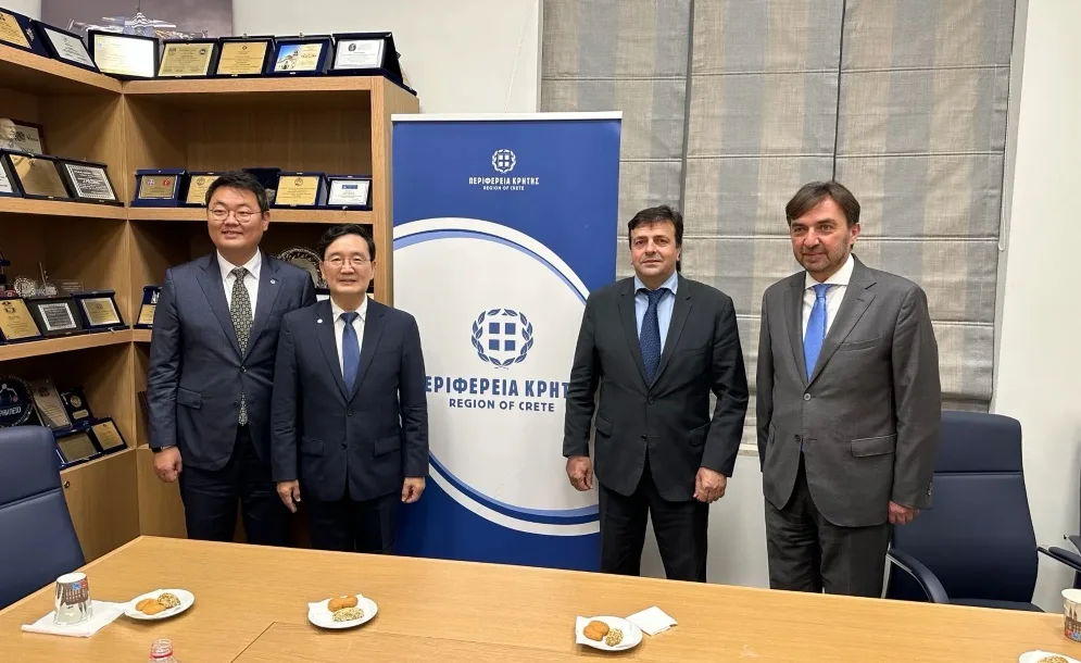 Οι Κορεάτες συναντήθηκαν με τον Αντιπεριφερειάρχη Ηρακλείου Νίκο Συριγωνάκη, και τον Περιφερειακό Σύμβουλο-Εντεταλμένο για την Ευρωπαϊκά και Διεθνή θέματα Γιώργο Αλεξάκη.