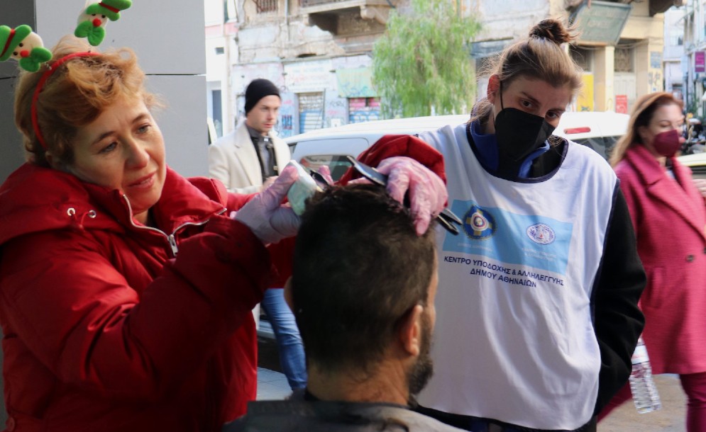 Φροντίδα, αγάπη και ξεχωριστή περιποίηση, προσέφεραν αυτές τις μέρες σε άστεγους συμπολίτες μας στους δρόμους της Αθήνας, εθελοντές κομμωτές από το Κοινωνικό Κομμωτήριο του Δήμου Αθηναίων. Σε συνεργασία με τις ομάδες street work του Κέντρου Υποδοχής και Αλληλεγγύης του δήμου (Κ.Υ.Α.Δ.Α.), εθελοντές προσέγγισαν ανθρώπους που ζουν στο δρόμο με σκοπό να τούς προσφέρουν την περιποίηση που -μεταξύ άλλων- έχουν ανάγκη.