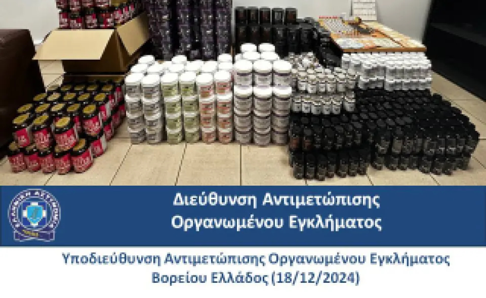 Από την Υποδιεύθυνση Αντιμετώπισης Οργανωμένου Εγκλήματος Βορείου Ελλάδος της Διεύθυνσης Αντιμετώπισης Οργανωμένου Εγκλήματος εξαρθρώθηκε εγκληματική ομάδα, τα μέλη της οποίας δραστηριοποιούνταν στη διακίνηση αναβολικών και συμπληρωμάτων διατροφής, που περιείχαν απαγορευμένες ουσίες, επικίνδυνες για την ανθρώπινη υγεία.