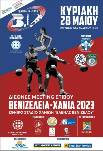 Στα Χανιά την Κυριακή 28 Μαΐου θα χτυπά η καρδιά του Ευρωπαϊκού στίβου, αφού το διεθνές μίτινγκ στίβου «ΒΕΝΙΖΕΛΕΙΑ – ΧΑΝΙΑ 2023», που διοργανώνεται Σ.Ε.Γ.Α.Σ., Α.Ο. Χανίων Κύδων, Γ.Σ. Ελ. Βενιζέλος και Ε.Α.Σ. Σ.Ε.Γ.Α.Σ. Κρήτης, με συνδιοργανωτές: την Περιφέρεια Κρήτης, το Δήμο Χανίων, το Δήμο Πλατανιά, το Δήμο Αποκορώνου, το ίδρυμα Ερευνών και Μελετών «Ελευθέριος Βενιζέλος»,