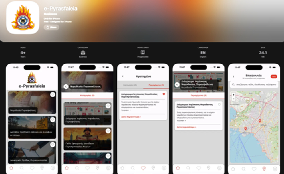 Η εφαρμογή «e-Pyrasfaleia» είναι διαθέσιμη για δωρεάν λήψη σε όλες τις συσκευές: