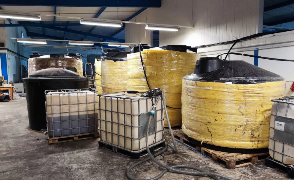 - 61 πλαστικές δεξαμενές με παραπάνω από 82.900 λίτρα με υγρό άγνωστης σύστασης,