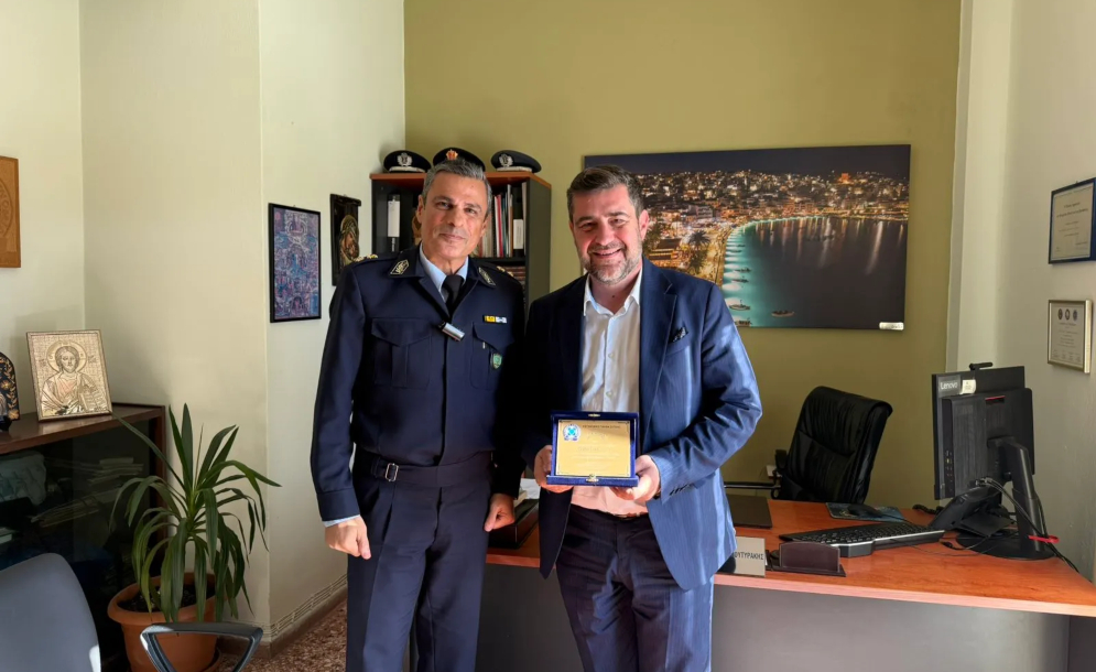 Ως ένδειξη εκτίμησης και σεβασμού για τη στήριξη που παρέχει στην τοπική αστυνομία, ο Διοικητής απένειμε στον Αντιπεριφερειάρχη τιμητική πλακέτα.