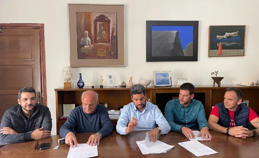 Ακόμα μια σημαντική σύμβαση για εργασίες ενεργειακής αναβάθμισης, επισκευής και συντήρησης τεσσάρων σχολικών συγκροτημάτων του Δήμου Χανίων, υπέγραψε πρόσφατα ο Δήμαρχος, Π. Σημανδηράκης με τον ανάδοχο εργολάβο. Κατά την υπογραφή της σύμβασης, παρόντες ήταν οι Αντιδήμαρχοι, Τεχνικών Έργων, Μιχάλης Καλογριδάκης και Παιδείας και Δια Βίου Μάθησης, Αντώνης Ι. Βαρδάκης, καθώς και ο Διευθυντής της Τεχνικής Υπηρεσίας του Δήμου, Γ. Ευθυμίου.