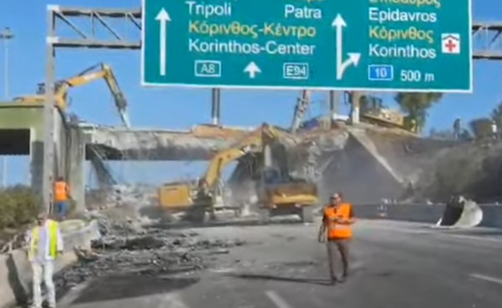 Λόγω των εργασιών καθαίρεσης, το ρεύμα της νέας Εθνικής Οδού από Αθήνα προς Κόρινθο θα παραμείνει κλειστό στο σημείο για κάποιες ημέρες.