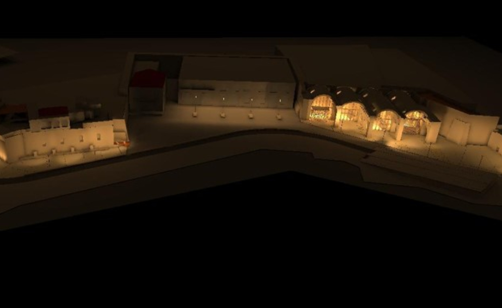 1. Δυτική Αποθήκη 180 τ.μ.: Θα χρησιμοποιηθεί ως σημείο ενημέρωσης των επισκεπτών. Το δώμα διαμορφώνεται ως υπαίθριος χώρος ανάπαυσης και θέασης