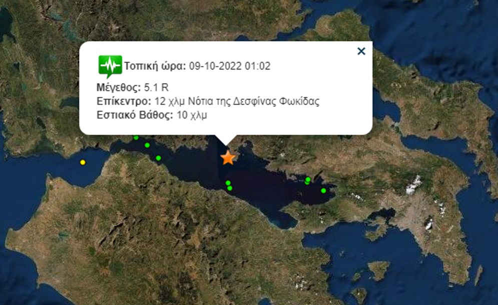 Ισχυρός σεισμός 5,1 βαθμών της Κλίμακας Ρίχτερ σημειώθηκε στη 1:03 μετά τα μεσάνυχτα, στον Κορινθιακό κόλπο.