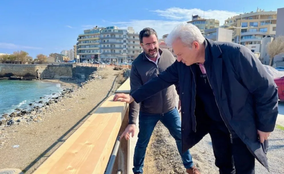 Σε αυτοψία στο σημείο εγκατάστασης των νέων προστατευτικών κιγκλιδωμάτων στην παραλιακή λεωφόρο Σοφοκλή Βενιζέλου προχώρησε ο Δήμαρχος Ηρακλείου Αλέξης Καλοκαιρινός συνοδευόμενος από τον Αρμόδιο Αντιδήμαρχο Τεχνικών Έργων Γιώργο Σισαμάκη το πρωί της Τρίτης 20/2.