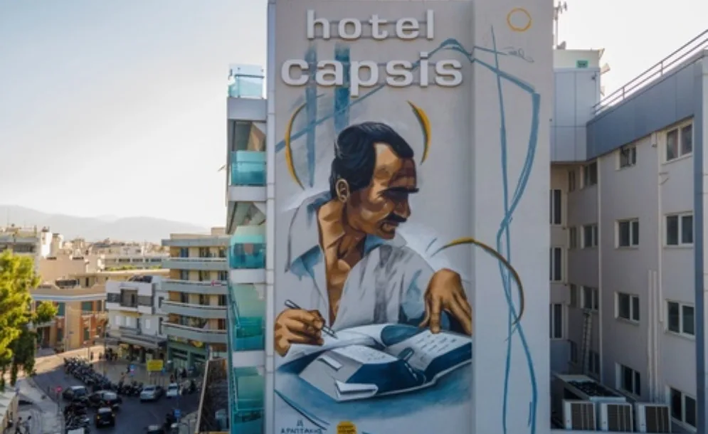 Και για την προσωπογραφία του μεγάλου Κρητικού Νίκου Καζαντζάκη, από τον Αλέξανδρο Ραπτάκη, στον ανατολικό τοίχο του ξενοδοχείου Capsis Astoria (Πλατεία Ελευθερίας). Αμφότερες έχουν κερδίσει τις εντυπώσεις και των κατοίκων και των επισκεπτών του Ηρακλείου, δίνοντας ιδιαίτερο χρώμα σε δυο κεντρικά σημεία του.