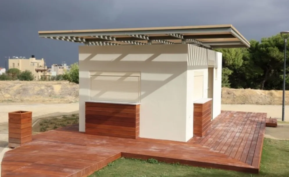 – Διαμορφώνεται η ράμπα πρόσβασης (υπόβαση & έγχρωμο δάπεδο) και τοποθετούνται ηλεκτρονικά βυθιζόμενα κολωνάκια για ελεγχόμενη πρόσβαση τροχοφόρων