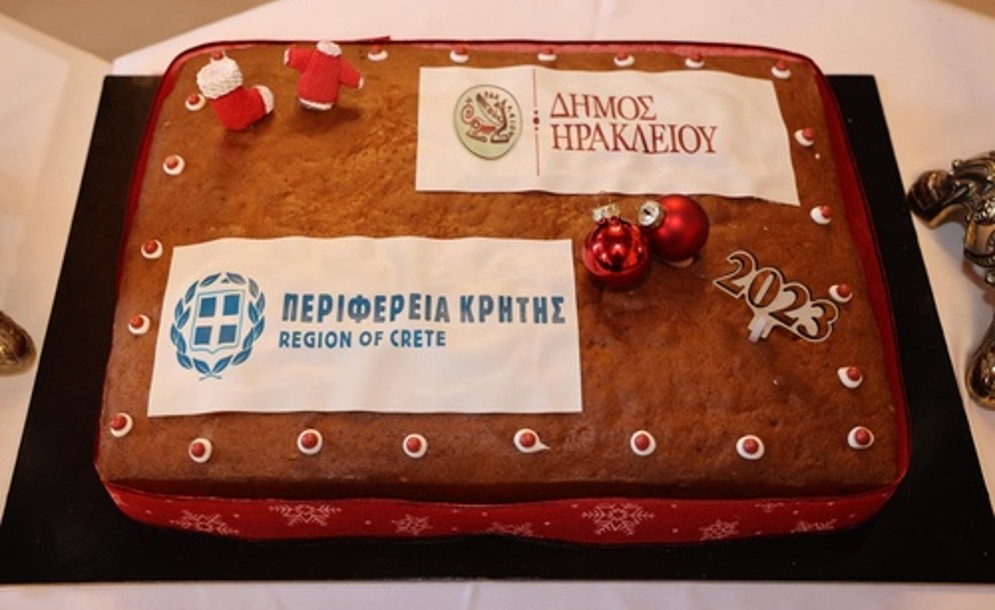 Την παραδοσιακή πρωτοχρονιάτικη πίτα έκοψε, το μεσημέρι της Κυριακής 1ης Ιανουαρίου 2023, ο Δήμαρχος Ηρακλείου Βασίλης Λαμπρινός μαζί με τον Αντιπεριφερειάρχη της Περιφερειακής Ενότητας Ηρακλείου Νίκο Συριγωνάκη στην αίθουσα «Ελευθέριος Βενιζέλος» στην Λότζια .