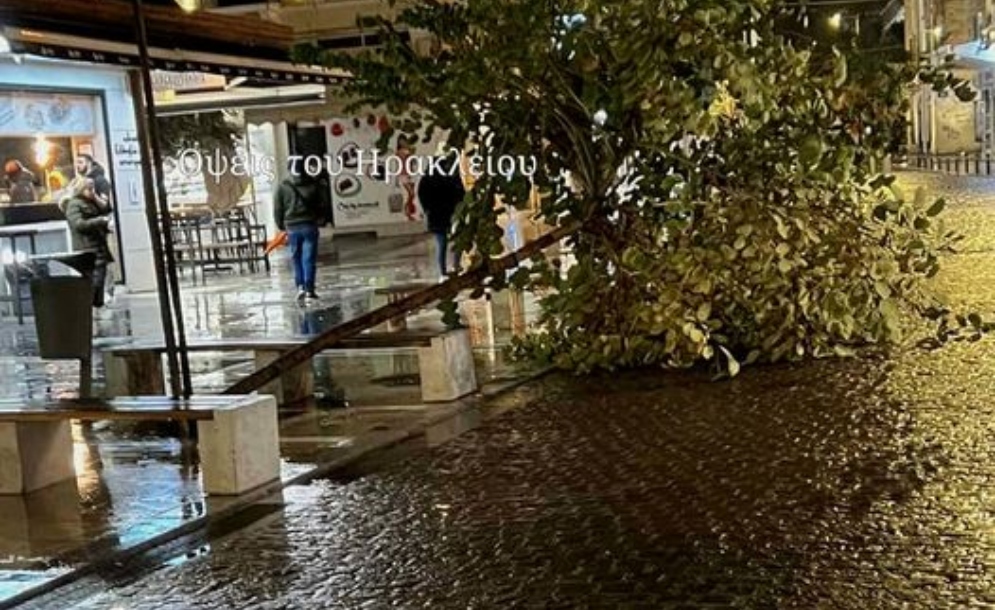 Πτώσεις δέντρων στο Ηράκλειο το βράδυ της Κυριακής
