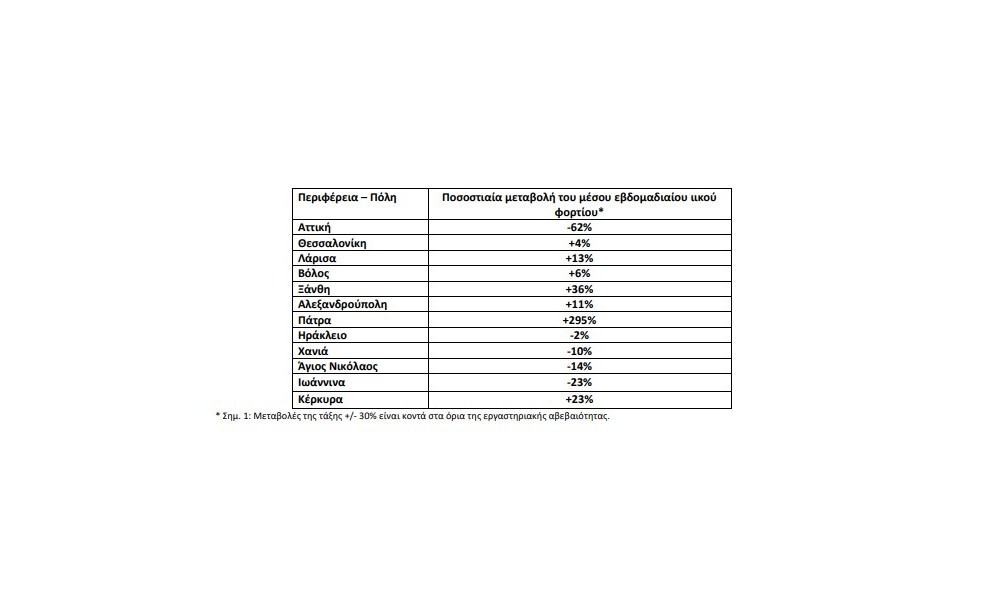 Εβδομαδιαία μεταβολή: : άνοδος >30% : πτώση >30% : οριακή άνοδος (+10 έως +30%) : οριακή πτώση (-10 έως -30%) : σταθεροποίηση (+/-10%)