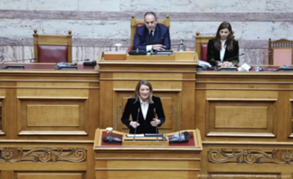 Η Πρόεδρος του Ευρωπαϊκού Κοινοβουλίου, κ. Ρομπέρτα Μέτσολα, απηύθυνε ομιλία στην αίθουσα Ολομέλειας της Βουλής των Ελλήνων, κατά την κοινή συνεδρίαση της Ειδικής Διαρκούς Επιτροπής Ευρωπαϊκών Υποθέσεων και των Διαρκών Επιτροπών Εθνικής Άμυνας και Εξωτερικών Υποθέσεων, Οικονομικών Υποθέσεων, Δημόσιας Διοίκησης, Δημόσιας Τάξης και Δικαιοσύνης και Παραγωγής και Εμπορίου, με θέμα ημερήσιας διάταξης «H Ευρωπαϊκή Ένωση ενόψει των Ευρωεκλογών (The EU ahead of the European Elections)».