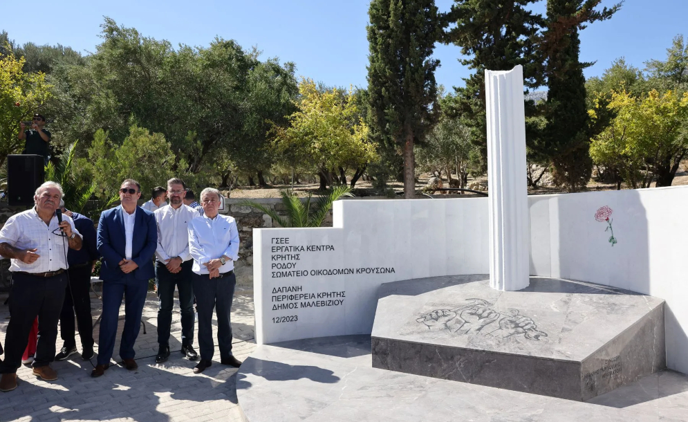 Ο Πρόεδρος του Εργατικού Κέντρου Ηρακλείου Στέλιος Βοργιάς ευχαρίστησε την Περιφέρεια Κρήτης, τον Περιφερειάρχη Σταύρο Αρναουτάκη αλλά και τον Δήμαρχο Μαλεβιζίου Μενέλαο Μποκέα, για την ουσιαστική στήριξη κατασκευής του μνημείου