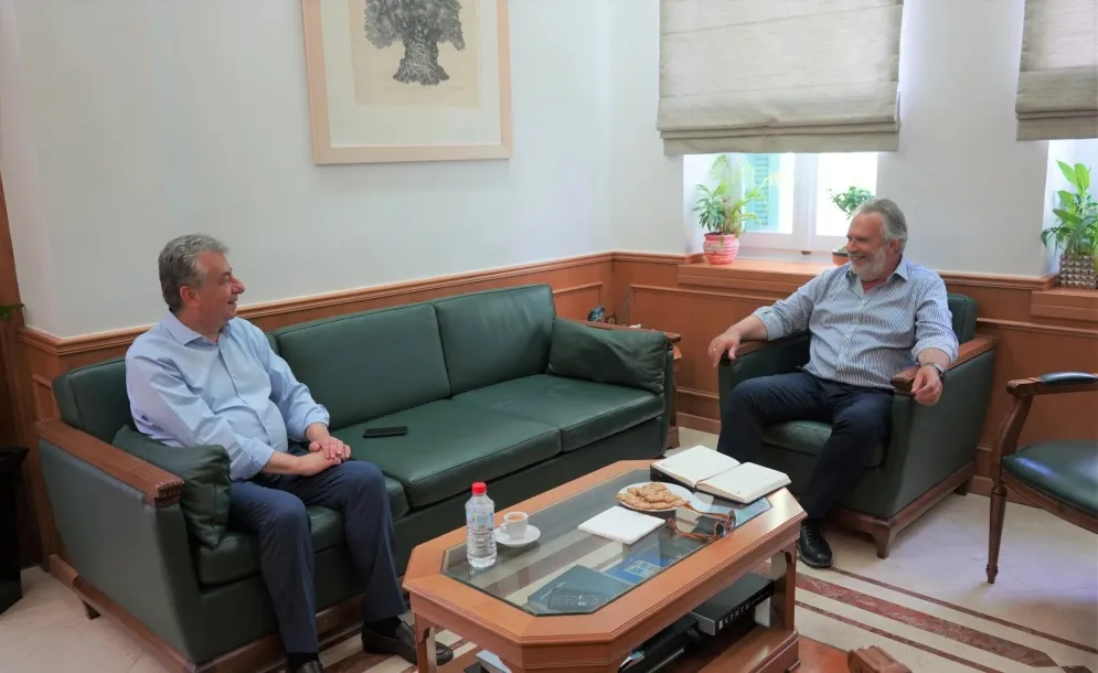 Ο Δήμαρχος Σητείας Γιώργος Ζερβάκης επισκέφθηκε τον Περιφερειάρχη Κρήτης Σταύρο Αρναουτάκη. Στη συνάντηση ο Δήμαρχος Σητείας ενημέρωσε τον Περιφερειάρχη για την πρόοδο του σημαντικού έργου ανάπλασης της πόλης που υλοποιείται σύμφωνα με το χρονοδιάγραμμα και χρηματοδοτείται από το ΠΕΠ της Περιφέρειας Κρήτης.