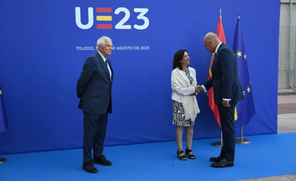 Ο Υπουργός Εθνικής Άμυνας, Νίκος Δένδιας, κατά την προσέλευση του τη Τετάρτη 30 Αυγούστου 2023, στην Άτυπη Σύνοδο των Υπουργών Άμυνας της ΕΕ στο Τολέδο, δήλωσε: