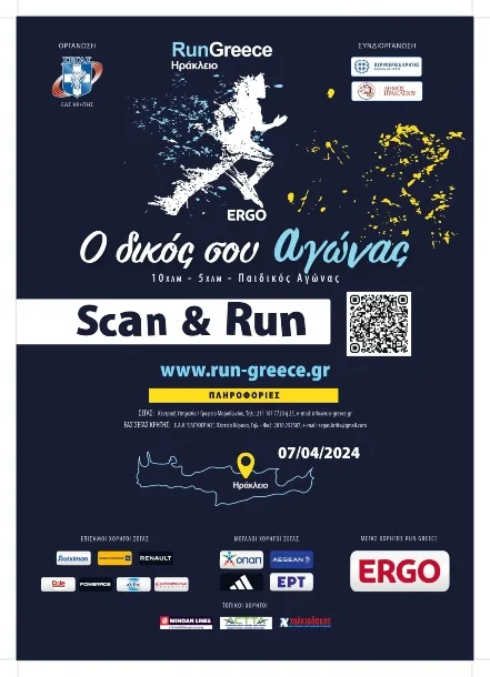 Τον αγώνα «RUN GREECE ΗΡΑΚΛΕΙΟ (5χλμ – 10χλμ και παιδικός αγώνας 1.100μ), διοργανώνουν την Κυριακή 7 Απριλίου, ο Σ.Ε.Γ.Α.Σ. και η Ε.Α.Σ. Σ.Ε.ΓΑ.Σ. Κρήτης, με συνδιοργανωτές την ΠΕΡΙΦΕΡΕΙΑ ΚΡΗΤΗΣ και τον ΔΗΜΟ ΗΡΑΚΛΕΙΟΥ, μεγάλο χορηγό την ERGO Ασφαλιστική και τοπικούς χορηγούς τις Μινωικές Γραμμές, το Σύνδεσμο Τουριστικών και Ταξιδιωτικών Γραφείων Κρήτης και τα Super Market Χαλκιαδάκης.