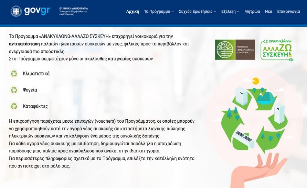 «Ανακυκλώνω – Αλλάζω Συσκευή»: Σε λειτουργία η ιστοσελίδα για την υποβολή των αιτήσεων