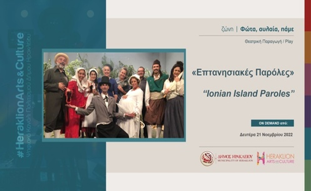 Οι «Επτανησιακές Παρόλες» μια πρωτότυπη μουσικόθεατρική παράσταση με μονόπρακτες κωμικές ηθογραφίες συνοδευόμενες από μουσική (κιθάρες, μαντολίνο, τραγούδι) και επτανησιακές καντάδες είναι διαθέσιμη στο διαδικτυακό κανάλι πολιτισμού . Την παράσταση μπορείτε να παρακολουθήσετε στη Ζώνη θέασης...