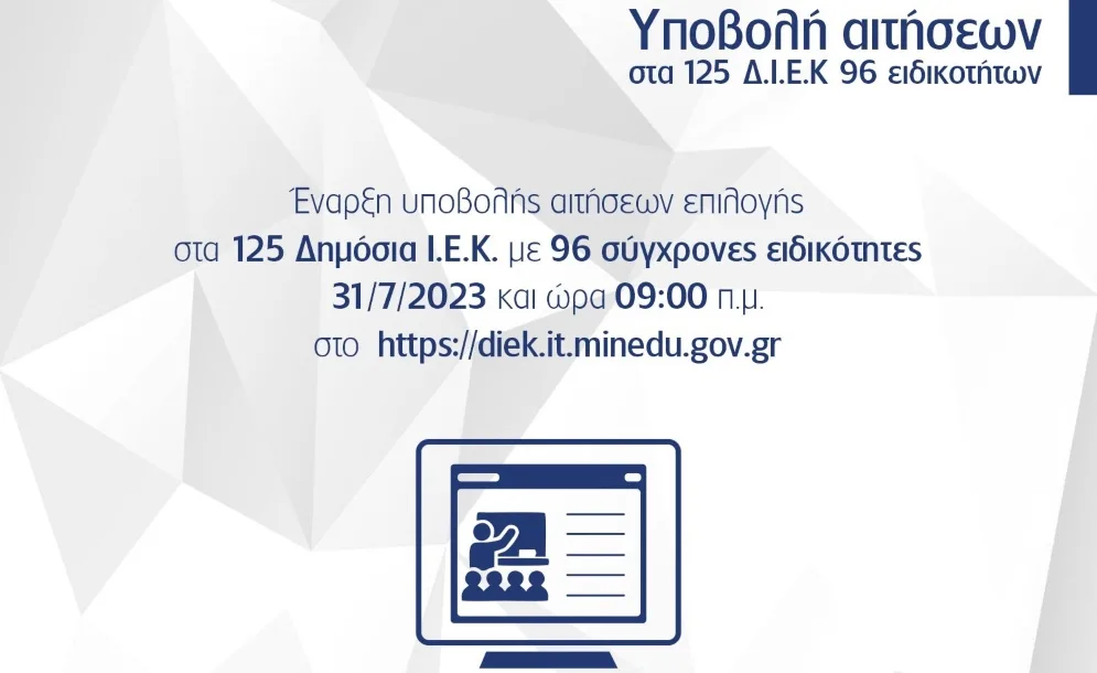 Τα Υπουργεία Παιδείας, Θρησκευμάτων και Αθλητισμού και Ψηφιακής Διακυβέρνησης ανακοινώνουν ότι από Δευτέρα 25 Νοεμβρίου, ξεκινά η υποβολή αιτήσεων χορήγησης στεγαστικού επιδόματος για καταρτιζόμενους των Δημοσίων Σχολών Ανώτερης Επαγγελματικής Κατάρτισης (ΣΑΕΚ – πρώην ΙΕΚ) για το εκπαιδευτικό έτος 2023-2024....