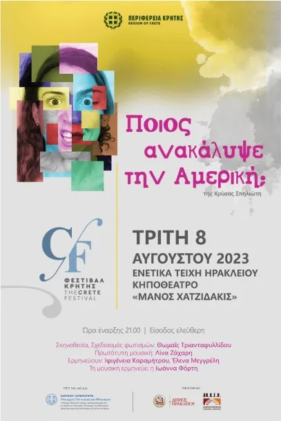 Στο πλαίσιο του «Φεστιβάλ Κρήτης», που διοργανώνει η Περιφέρεια Κρήτης, για τρίτη χρονιά φέτος, υπό την αιγίδα του υπουργείου Πολιτισμού, παρουσιάζεται η παράσταση «Ποιός ανακάλυψε την Αμερική ;» της Χρύσας Σπηλιώτη τιμώντας τη μνήμη...
