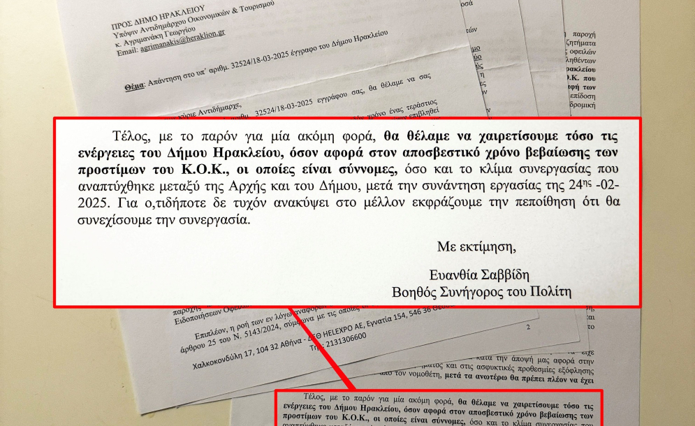 Απολύτως σύννομες οι ενέργειες του Δήμου Ηρακλείου για τα πρόστιμα του Κ.Ο.Κ.
