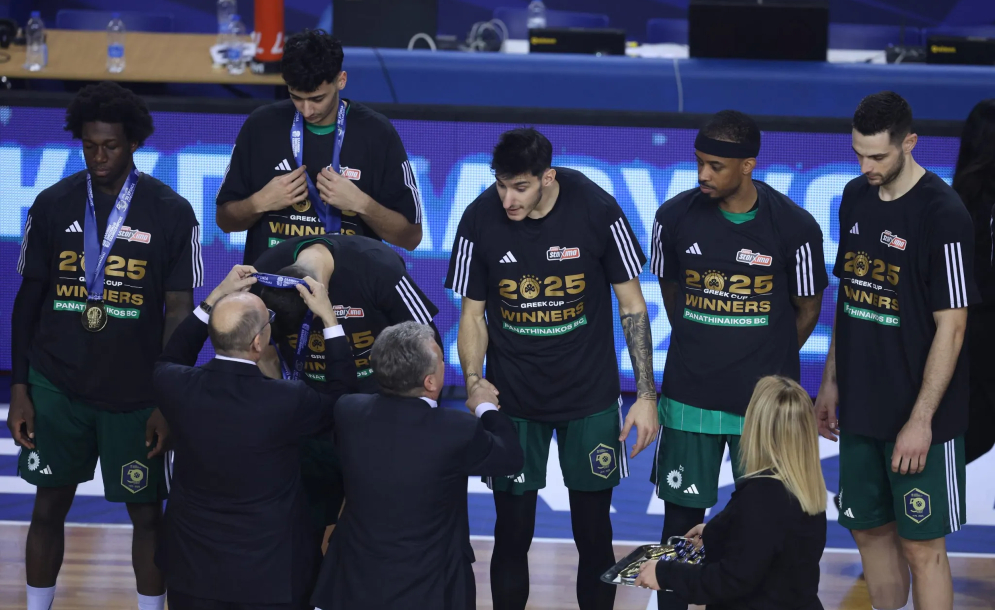 Τις απονομές των μεταλλίων στους νικητές παίκτες του Παναθηναϊκού στον 50ο τελικό του Κυπέλλου Ελλάδας (ΟΠΑΠ Final Eight) στο κλειστό της Ν. Αλικαρνασσού, έκαναν ο Περιφερειάρχης Κρήτης Σταύρος Αρναουτάκης και ο Πρόεδρος της ΕΟΚ...