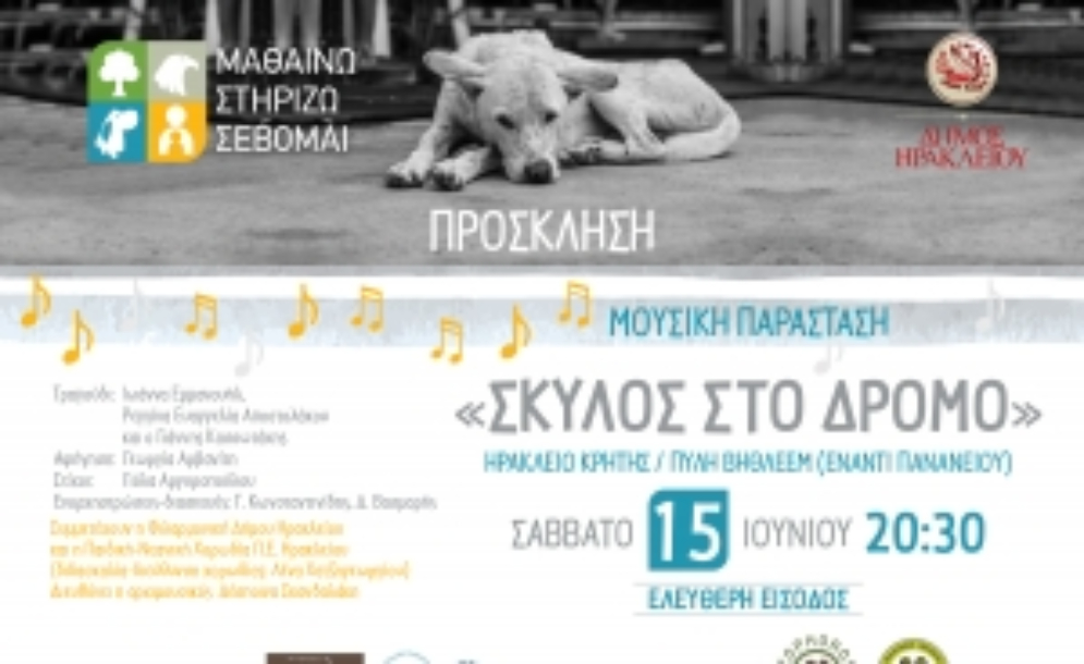 Τη μουσική παράσταση «Σκύλος στο Δρόμο» παρουσιάζει ο Δήμος Ηρακλείου το Σάββατο 15 Ιουνίου στις 20:30 στην Πύλη Βηθλεέμ, με ελεύθερη είσοδο, στο πλαίσιο των δράσεων για την ενημέρωση και ευαισθητοποίηση των πολιτών για...