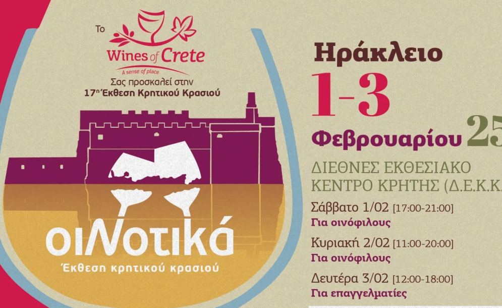 Οι οινοποιοί της Κρήτης ετοιμάζονται για 17η ΧΡΟΝΙΑ να υποδεχτούν τους φίλους του Κρητικού Αμπελώνα στην Έκθεση «ΟιΝοτικά», που θα πραγματοποιηθεί 1, 2 και 3 Φεβρουαρίου 2025, στο Διεθνές Εκθεσιακό Κέντρο Κρήτης (Δ.Ε.Κ.Κ.) στις...