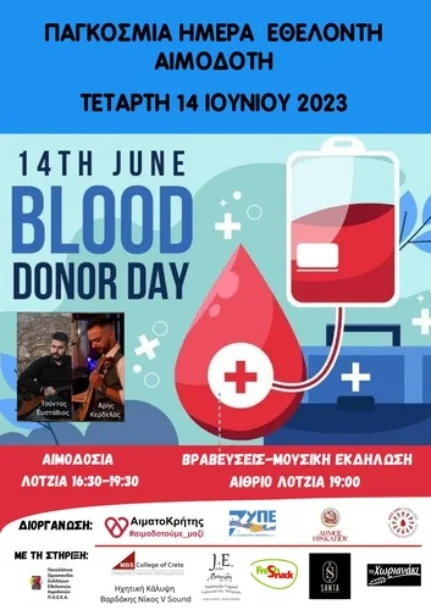 Η Περιφέρεια Κρήτης στηρίζει την εθελοντική αιμοδοσία ως κοινωνικό αγαθό, αλλά και το έργο των Συλλόγων του νησιού μας και προτρέπει τους πολίτες να υιοθετήσουν την προσφορά ζωής μέσα από την εθελοντική αιμοδοσία. Στο...