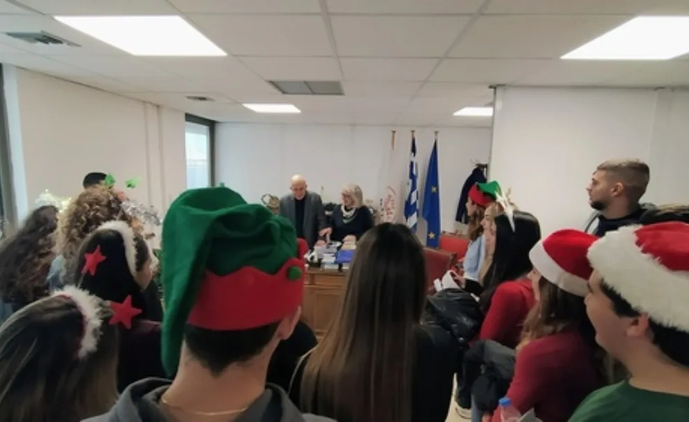 Με Χριστουγεννιάτικες μελωδίες «πλημμύρισε» το γραφείο του Δημάρχου Ηρακλείου Βασίλη Λαμπρινού στο κτίριο της οδού Ανδρόγεω, από μαθήτριες και μαθητές του Λυκείου Νέας Αλικαρνασσού. Ο Δήμαρχος καθώς και οι Αντιδήμαρχοι Στέλα Αρχοντάκη- Καλογεράκη, Αριστέα...