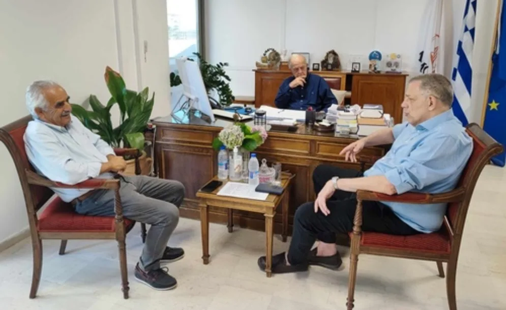 Συνάντηση με τον Υφυπουργό Μεταφορών και Υποδομών Νίκο Ταχιάο είχε το απόγευμα της Πέμπτης 3 Αυγούστου 2023 ο Δήμαρχος Ηρακλείου Βασίλης Λαμπρινός. Η συνάντηση πραγματοποιήθηκε στο γραφείο του Δημάρχου στο κτίριο της οδού Ανδρόγεω...