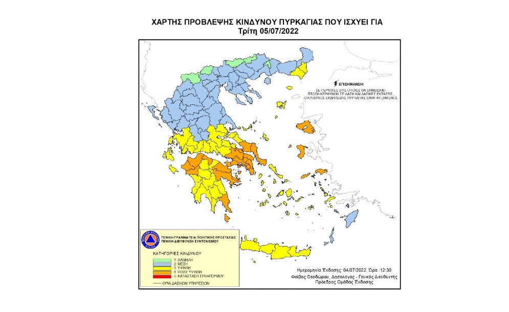 Σύμφωνα με το Χάρτη Πρόβλεψης Κινδύνου Πυρκαγιάς που εκδίδει η Γενική Γραμματεία Πολιτικής Προστασίας του Υπουργείου Κλιματικής Κρίσης & Πολιτικής Προστασίας (www.civilprotection.gr), για αύριο Σάββατο 16 Ιουλίου 2022, προβλέπεται πολύ υψηλός κίνδυνος πυρκαγιάς (κατηγορία κινδύνου 4) για τις εξής περιοχές: Περιφέρεια Αττικής Περιφέρεια...