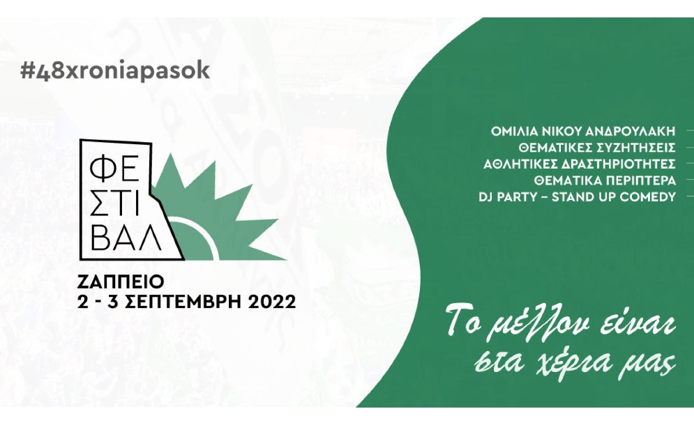 Με ένα φεστιβάλ όπου πρωταγωνιστές θα είναι οι νέοι και οι κοινωνικοί προβληματισμοί τους, γιορτάζεται φέτος η συμπλήρωση 48 ετών από την Ιδρυτική Διακήρυξη του ΠΑΣΟΚ. Επίκεντρο των εκδηλώσεων την Παρασκευή 2 Σεπτεμβρίου και...