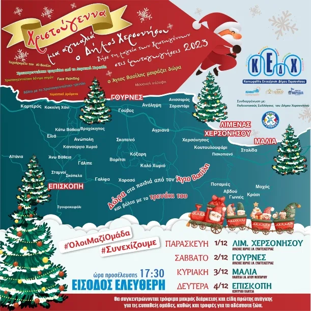 Χερσόνησος: Εκδηλώσεις 2023 -«Χριστούγεννα μια αγκαλιά ο Δήμος Χερσονήσου»