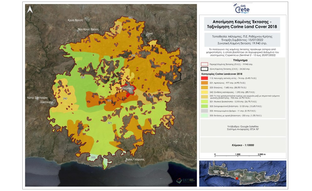 Η Περιφέρεια Κρήτης, μέσω του GIS Crete και της πρωτοποριακής εφαρμογής παρατήρησης της Γης, καταγράφει σημαντική δράση, αξιοποιώντας δορυφορικά δεδομένα. Οι πυρκαγιές που εκδηλώθηκαν τον περασμένο Ιούλιο στο Ρέθυμνο και οδήγησαν σε 20.000 στρέμματα...