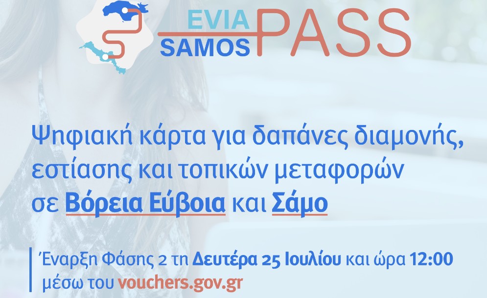 Σε λειτουργία πρόκειται να τεθεί τη Δευτέρα 25 Ιουλίου και ώρα 12:00 το North Evia – Samos Pass μέσω του vouchers.gov.gr. Πρόκειται για την πλατφόρμα που υλοποιήθηκε με τη συνεργασία των Υπουργείων Ψηφιακής Διακυβέρνησης,...