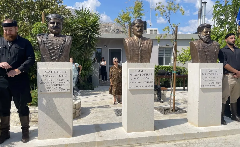 Ως Περιφέρεια Κρήτης, τιμούμε τον Οπλαρχηγό Μαλεβιζίου Μανουσάκη Εμμανουήλ, τον Αρχηγό της Εθνικής Αντίστασης Κρήτης Μπαντουβά Εμμανουήλ και τον Οπλαρχηγό Μαλεβιζίου και Βουλευτή της Κρητικής Πολιτείας Πολυξίγκη Ιωάννη.