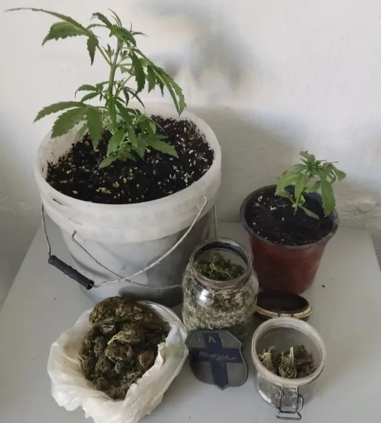 Κατά τη διάρκεια της έρευνας βρέθηκαν και κατασχέθηκαν 147,6 γραμμάρια κάνναβης και δύο δενδρύλλια κάνναβης τα οποία καλλιεργούνταν σε γλάστρες ευρισκόμενα στο στάδιο της ανάπτυξης.