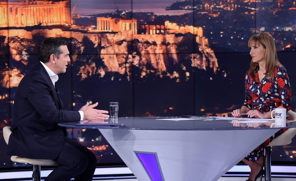 Συνέντευξη έδωσε ο Πρόεδρος του ΣΥΡΙΖΑ-Προοδευτική Συμμαχία στο κεντρικό δελτίο ειδήσεων του τηλεοπτικού σταθμού «STAR» και τη δημοσιογράφο Μάρα Ζαχαρέα, το βράδυ της Μεγάλης Δευτέρας.