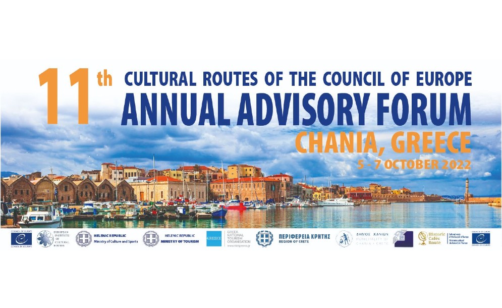 Η Διευρυμένη Μερική Συμφωνία Πολιτιστικών Διαδρομών του Συμβουλίου της Ευρώπης και το Ευρωπαϊκό Ινστιτούτο Πολιτιστικών Διαδρομών, σε συνεργασία με το Υπουργείο Πολιτισμού και Αθλητισμού, το Υπουργείο Τουρισμού, τον ΕΟΤ, την Περιφέρεια Κρήτης, τον Δήμο Χανίων, το Εμπορικό και Βιομηχανικό Επιμελητήριο Χανίων, καθώς και την Πολιτιστική Διαδρομή «Δρόμος των Ιστορικών Καφέ», ανακοινώσουν την έναρξη του 11ο Ετήσιου Συμβουλευτικού Forum Πολιτιστικών Διαδρομών του Συμβουλίου της Ευρώπης, που θα πραγματοποιηθεί από 5 έως 7 Οκτωβρίου 2022 στα Χανιά.Το θέμα του φετινού Forum είναι: «Πολιτιστικές Διαδρομές του Συμβουλίου της Ευρώπης: Διαφύλαξη των Ευρωπαϊκών Αξιών, της Πολιτιστικής Κληρονομιάς και του Διαλόγου».